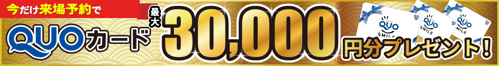 1)初回ご来場予約+HPの事前アンケートにご回答で「QUOカード10,000円分」を進呈