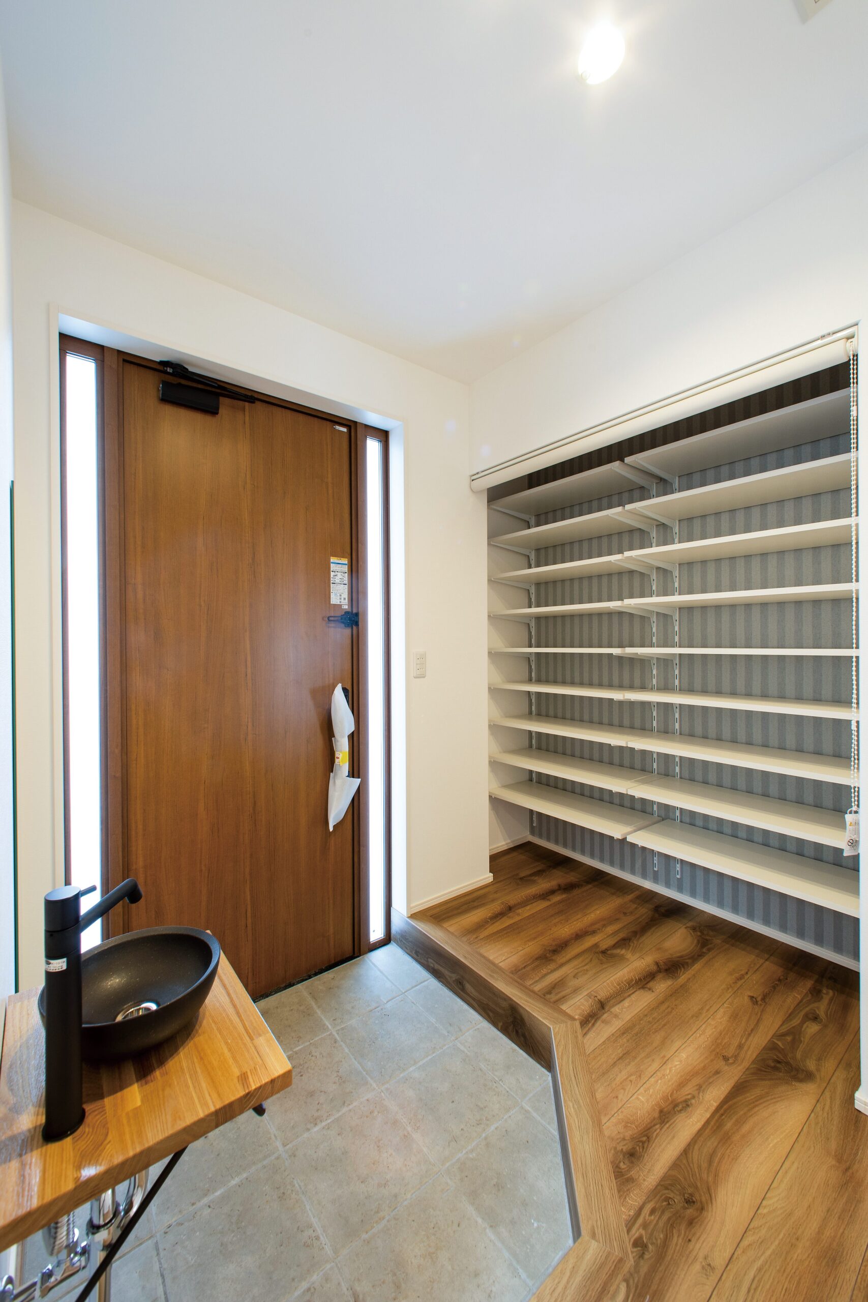 玄関に「ただいま手洗い」を設け、帰宅後の手洗いをスムーズに。